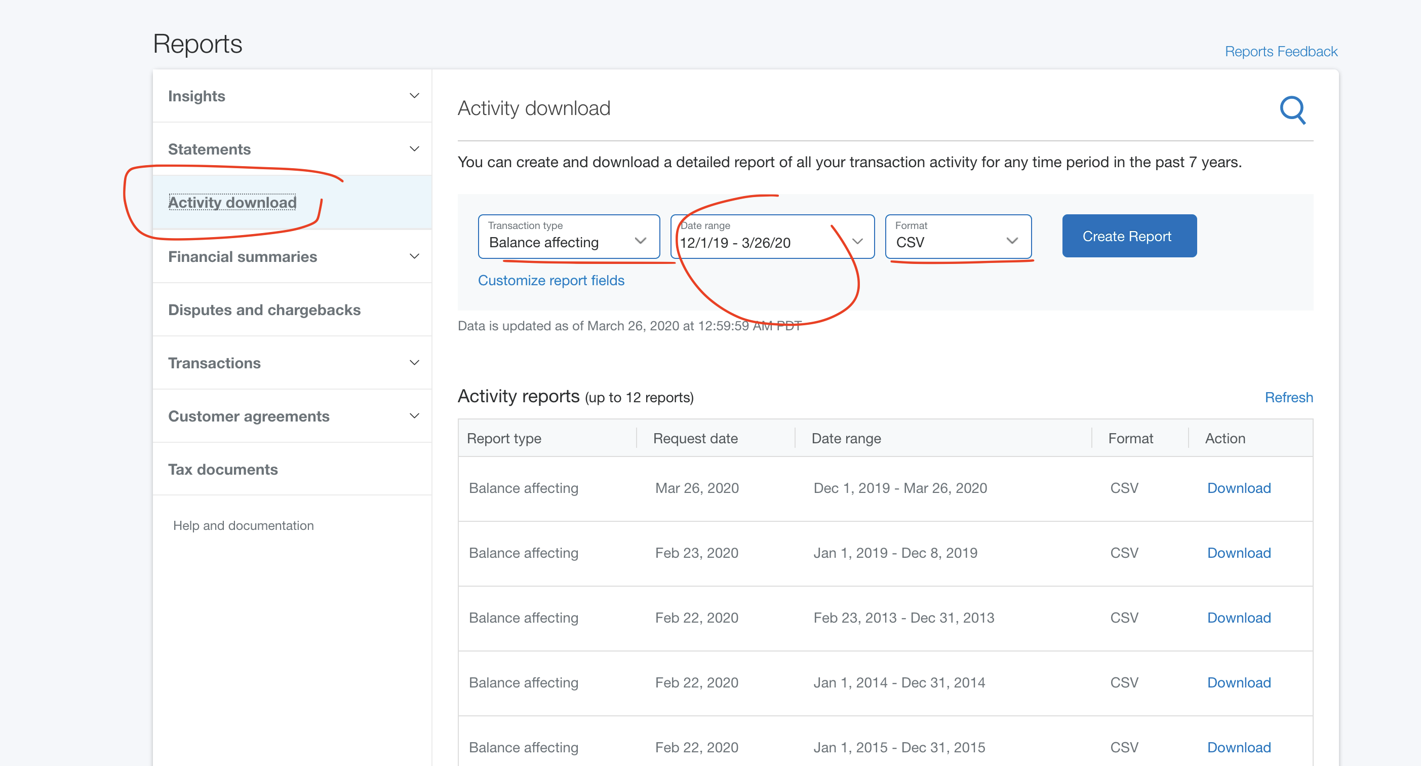 - In Stripe, for the pertinent month download the full report