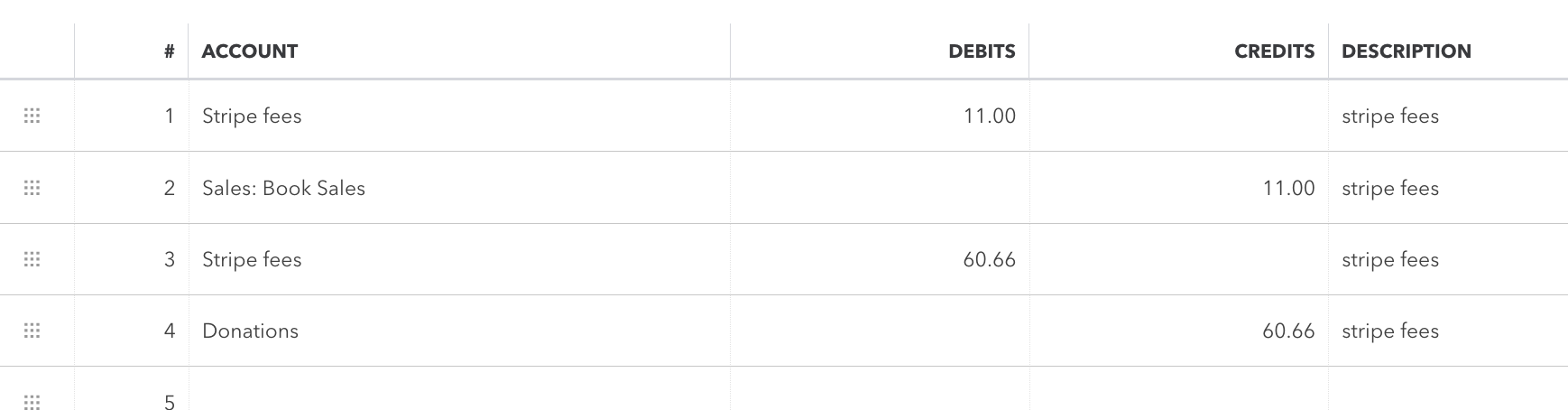 - In Quickbooks, split out the monthly payout in donations, books sales, and subventions (minus fees). The number under donations will be a bit off (since the payout doesn't correspond exactly to the income over the entire month).