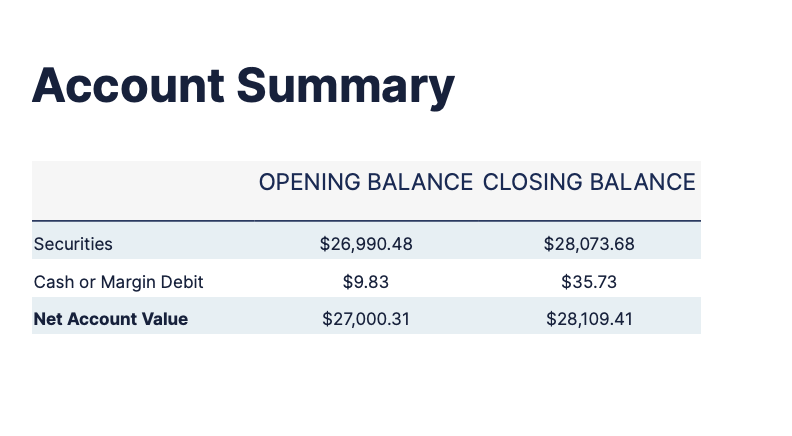 On the M1 Investment Portfolio backend go to Account > View Account Settings > Documents. Download the brokerage statement: